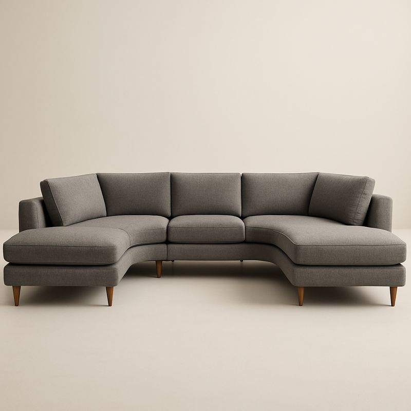 Szary narożnik tapicerowany poliester z nogami drewnianymi